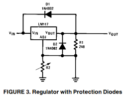 Kai tik 1 A tai pakanka ir LM 350 , bet kai jų kainos nedaug skiriasi (plastmasiniuose korpusuose) tai nėra prasmės dėt silpnesnę. Reguliuojamam BŪTINAI reikia apsauginių diodų taip kaip čia parodyta