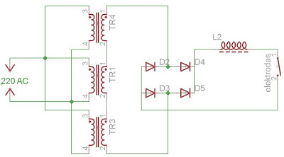 Pirmine schema gavosi tokia. Net nezinojau kam droselije tarpas reikalingas droseli pasibandymui surinkau is dvieju mikrobangines E serdziu ,bet ir tarpa reguliuojant be sroves ribojimo nevirina, (trasko, pjausto arba tesiog lidosi) tiesa elektroda siai akimirkai turiu tik 2,5. Uztrumpinus elektroda saugiklis 16A neismusa, neatitraukus elektrodo jis nedelsdamas pradeda lidytis.