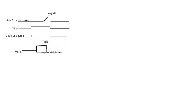 Pagal tavo schemą rėlės valdymo + reikia ne nuo akumo o nuo degimo. Be kitaip pamiršus išjungt gudrų jungiklį venteliatorius liks veikt ir sodint akumą. Ir jei jau kuri savo sistemą tai pastatyk saugiklius, jie tau tikrai pravers bent kol junginėsi.