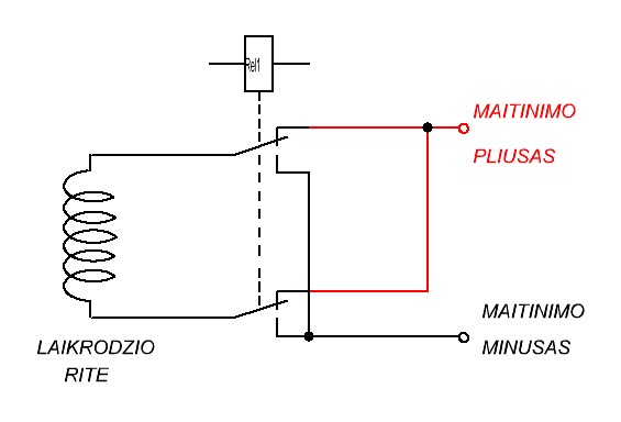relė (arba tranzistorinis komutatorius) perjunginėja laikrodžio ritę, pakaitomis pajungdami jos išvadus tai prie pliuso, tai prie minuso