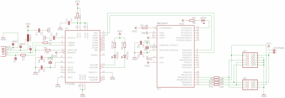 | tikrink schema ir laidus iki programatoriaus schemos. neturi buti anei trumpo anei nutrukimo, ypatingai patikrink ar nesumaisei MISO/MOSI. su usblib32 matosi kaip ir viskas tvarkoje, nors pasitikrink ir idiek kita versija. pas mane 1.2.2.0 ir veikia normaliai, nors buna kad kitiem spyriojasi. |
