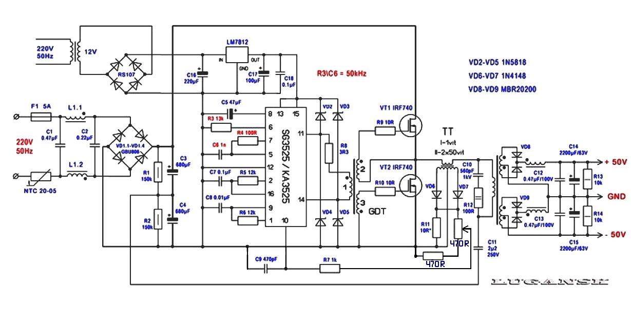 Cia butu SMPS impulsiniam maitblokiui,akumu krovikliui.Reikia galingesnio,nes esama esu pasidares su ETD44 trafu.Kurio galia tik 400w.o reikia virs 1kw. Iejimo itampos butu tokios;