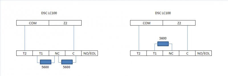 O reikia taip http://www.hobbielektronika.hu/forum/getfile.php?id=79460 Pavyzdžiai duoti DSC centralei Paradox varžos kitokios.